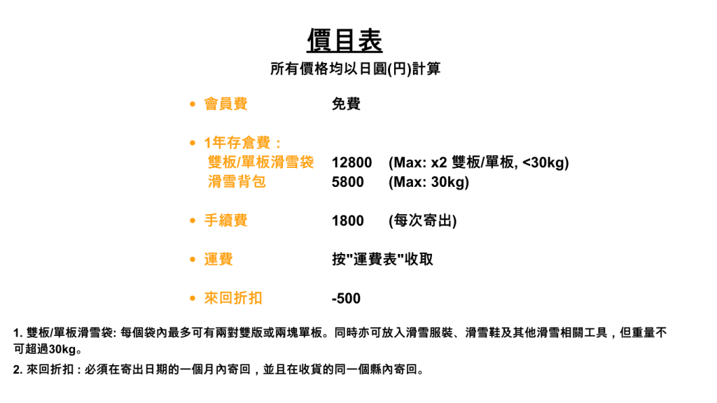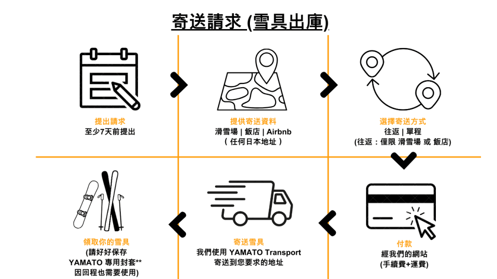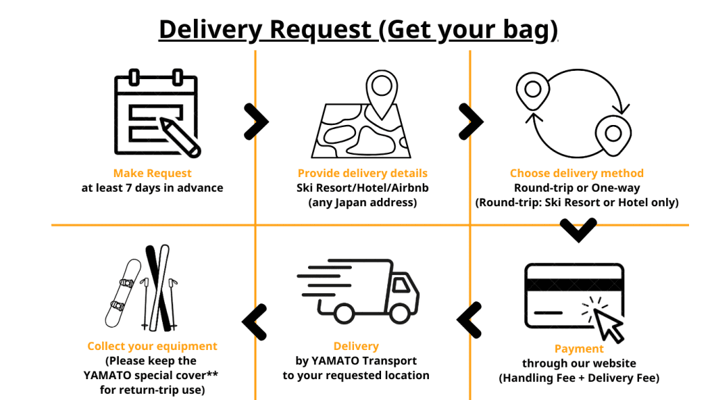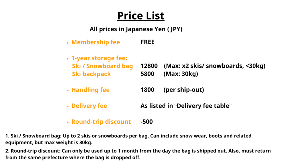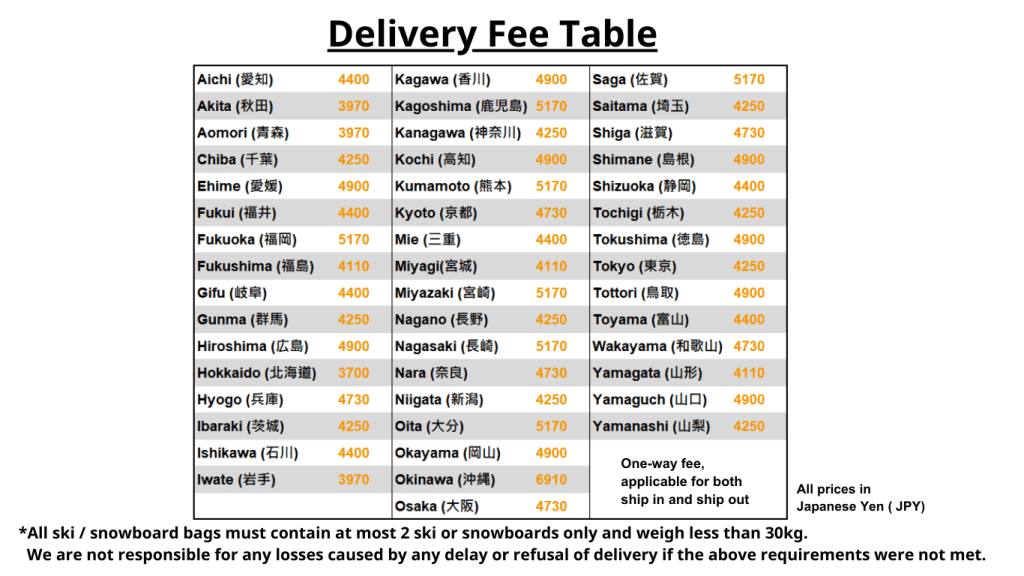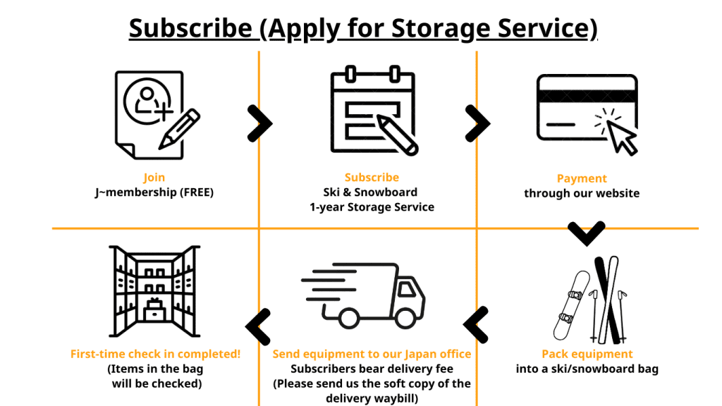 Instead of shipping your own skis or snowboards from overseas, you may purchase new equipment in Japan and send it directly to our storehouse for storage.